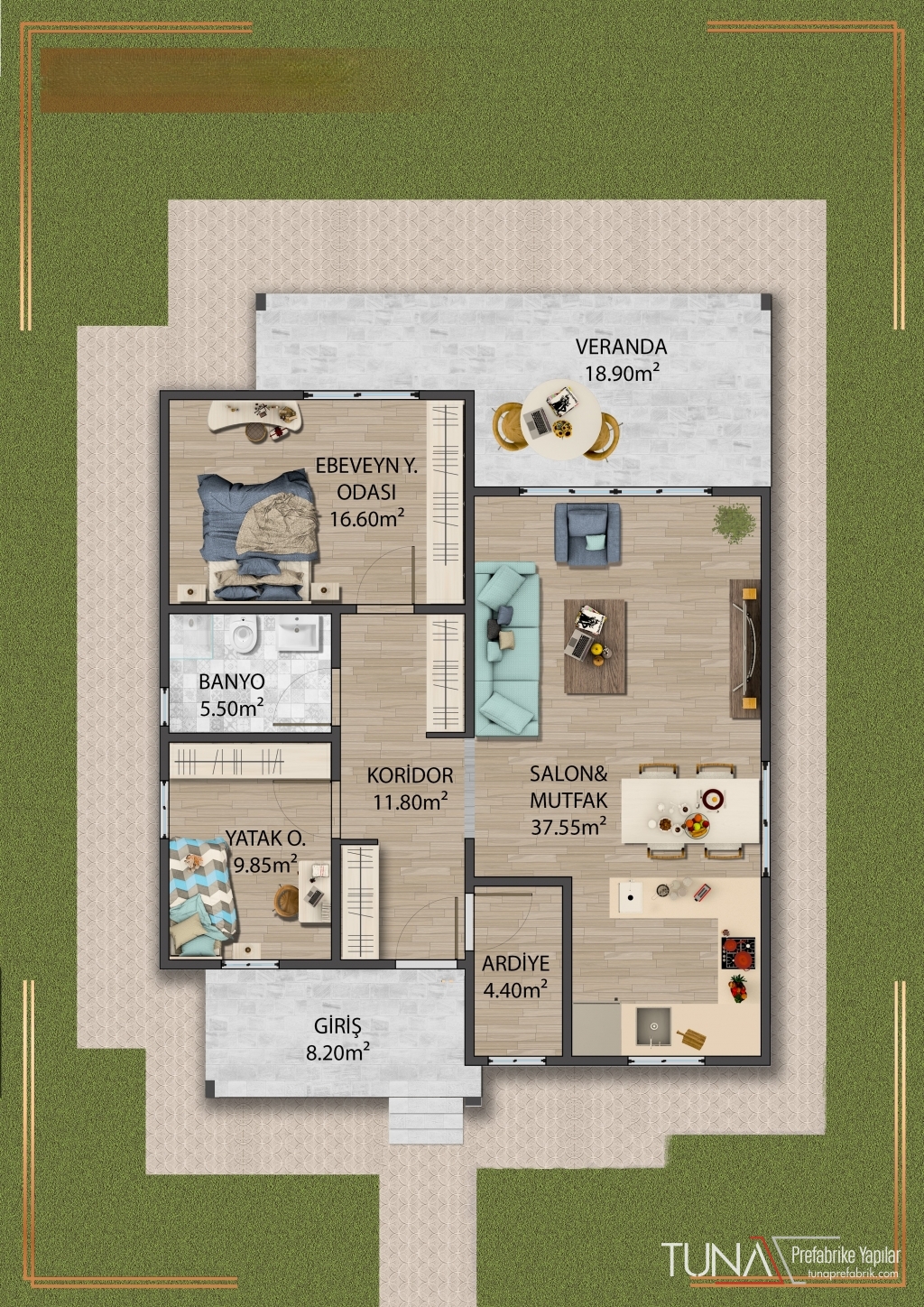 Çatı Kaplaması : Galveniz Sac, Metal Kiremit(Opsiyonel), Shingle (Opsiyonel )