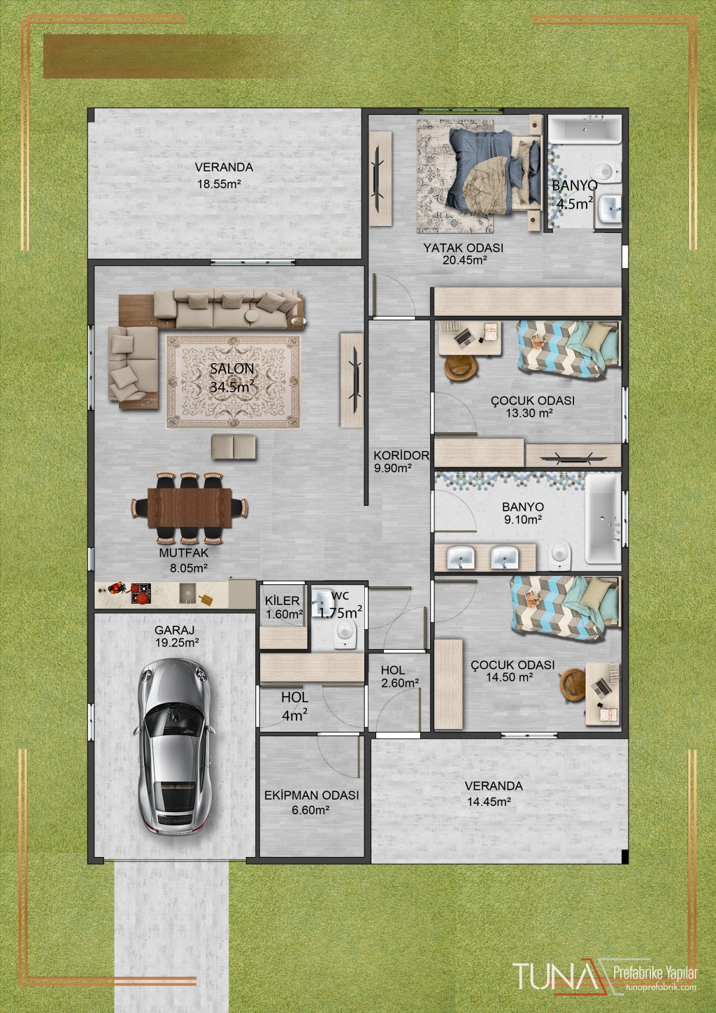 Çatı Kaplaması : Galveniz Sac, Metal Kiremit(Opsiyonel), Shingle (Opsiyonel )