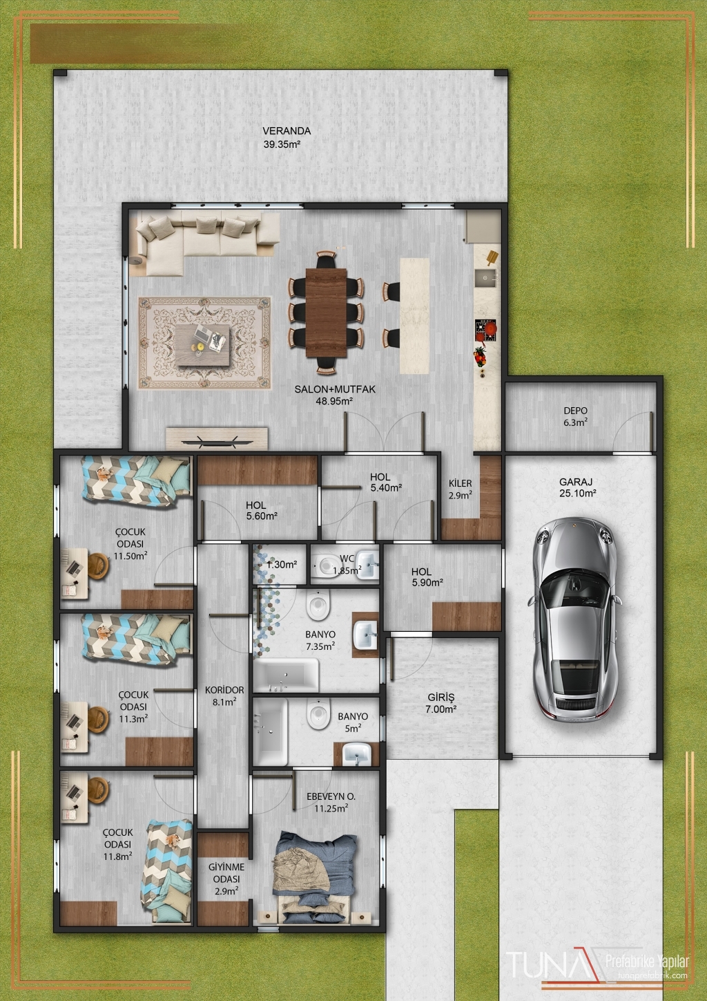 Tek Katlı Çelik Evler / Tek Katlı 219 m² Çelik Ev